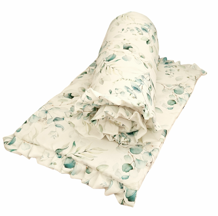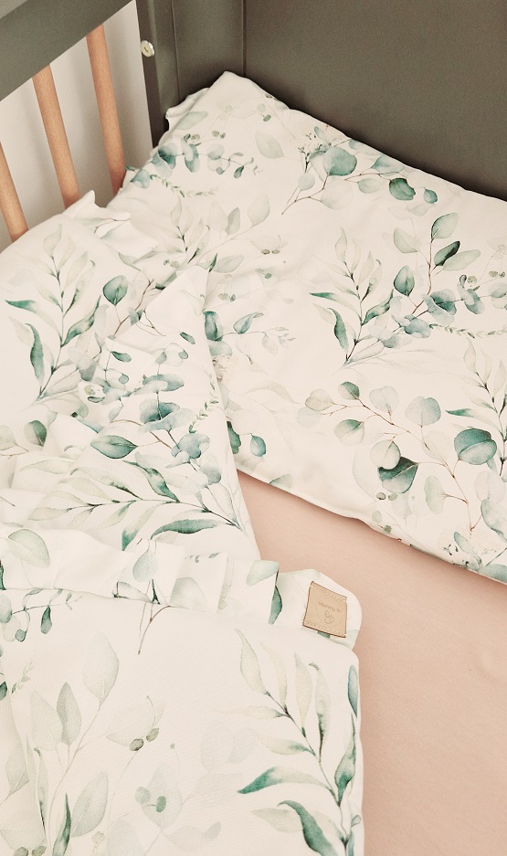 Dodatki: Falbanka z dwóch stron poduszki. Spodnia część pozostaje bez falbany dla wygody twojego dziecka.