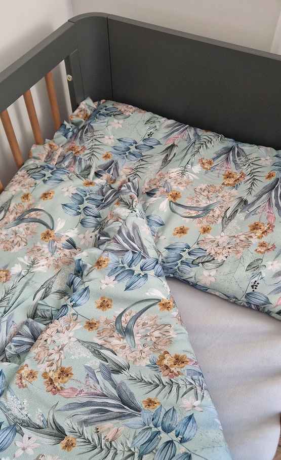 Dodatki: Falbanka z dwóch stron poduszki. Spodnia część pozostaje bez falbany dla wygody twojego dziecka.