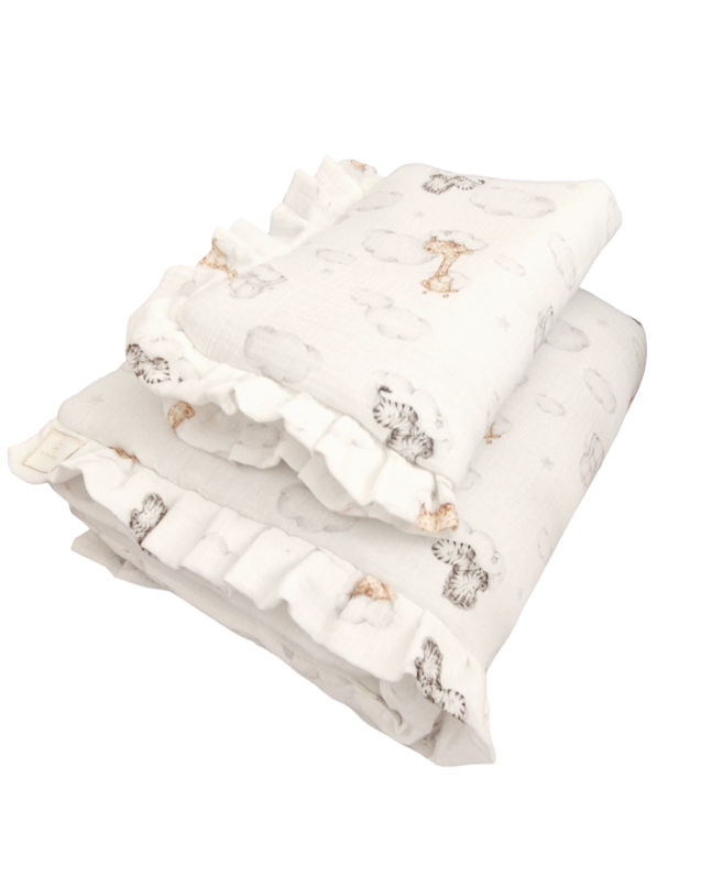 Komplet udekorowany jest miękką waflową falbanką