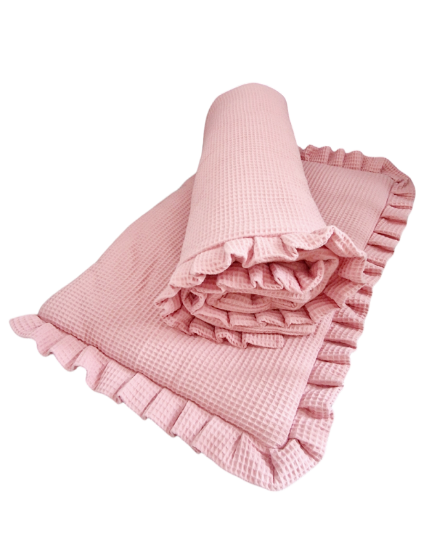 Komplet udekorowany jest miękką waflową falbanką